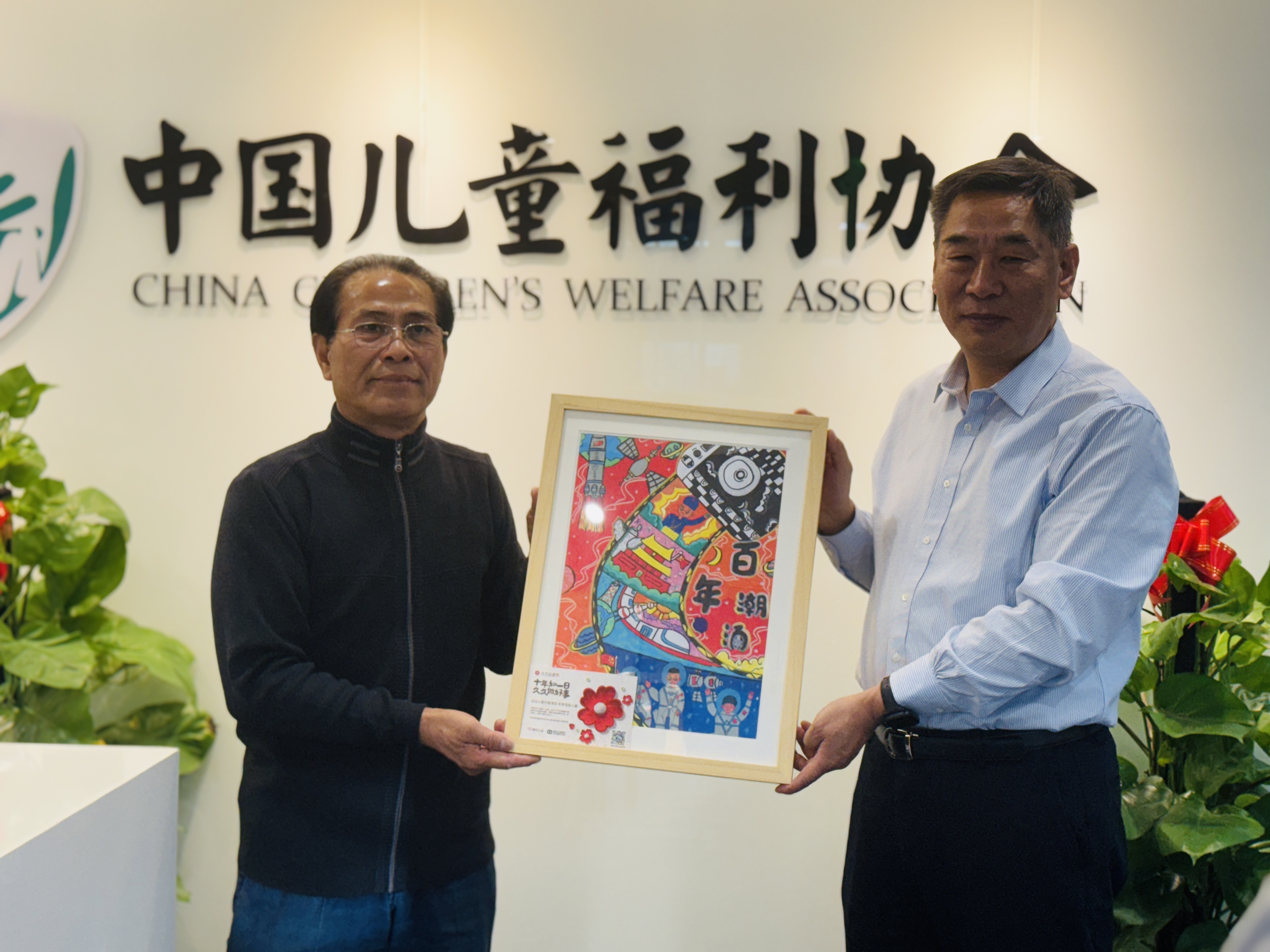 会后,赵泳会长代表中国儿童福利协会向中华动画文化促进会捐赠被救助儿童珍贵画作,郑绪涛会长代表中华动画文化促进会接受捐赠。